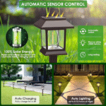– **Énergie Solaire** : Recharge automatique en journée grâce à son panneau solaire intégré, assurant un éclairage nocturne sans consommation d’électricité.